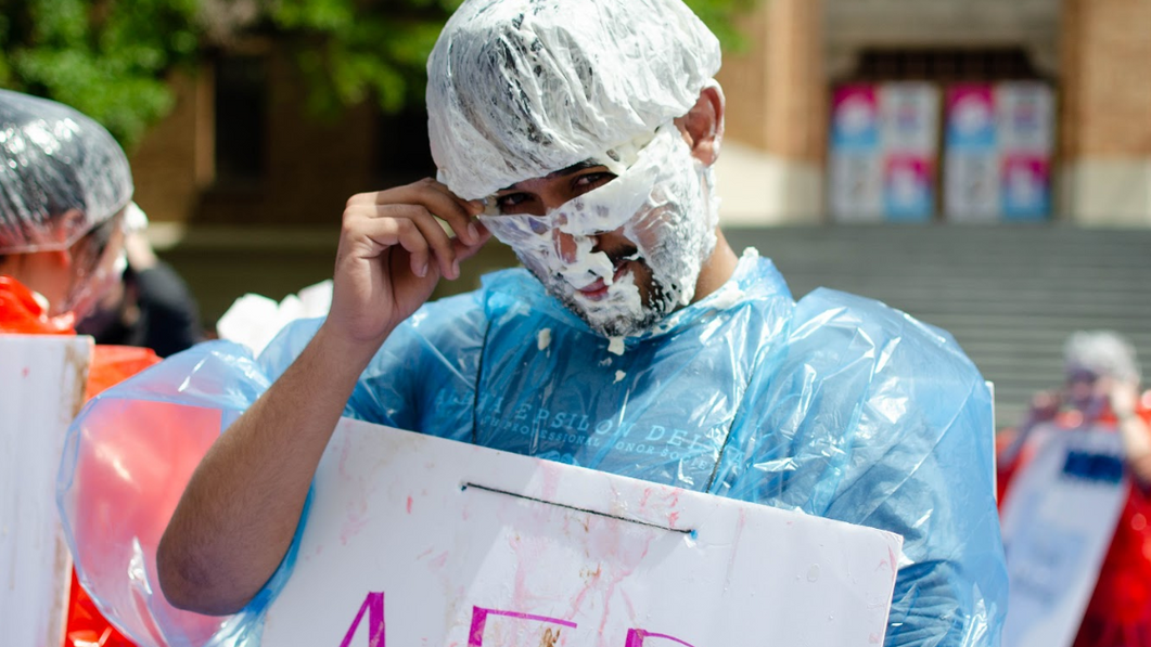 During the day of our event, student organization leaders and professors volunteer to get pied in the face as a way to end our final efforts in our year-long fundraising. The day is jam-packed with fun activities, music, food, and more! While it is a celebration of Texas AED's fundraising, Pie A President also brings thousands of UT students together to participate and learn more about our cause.